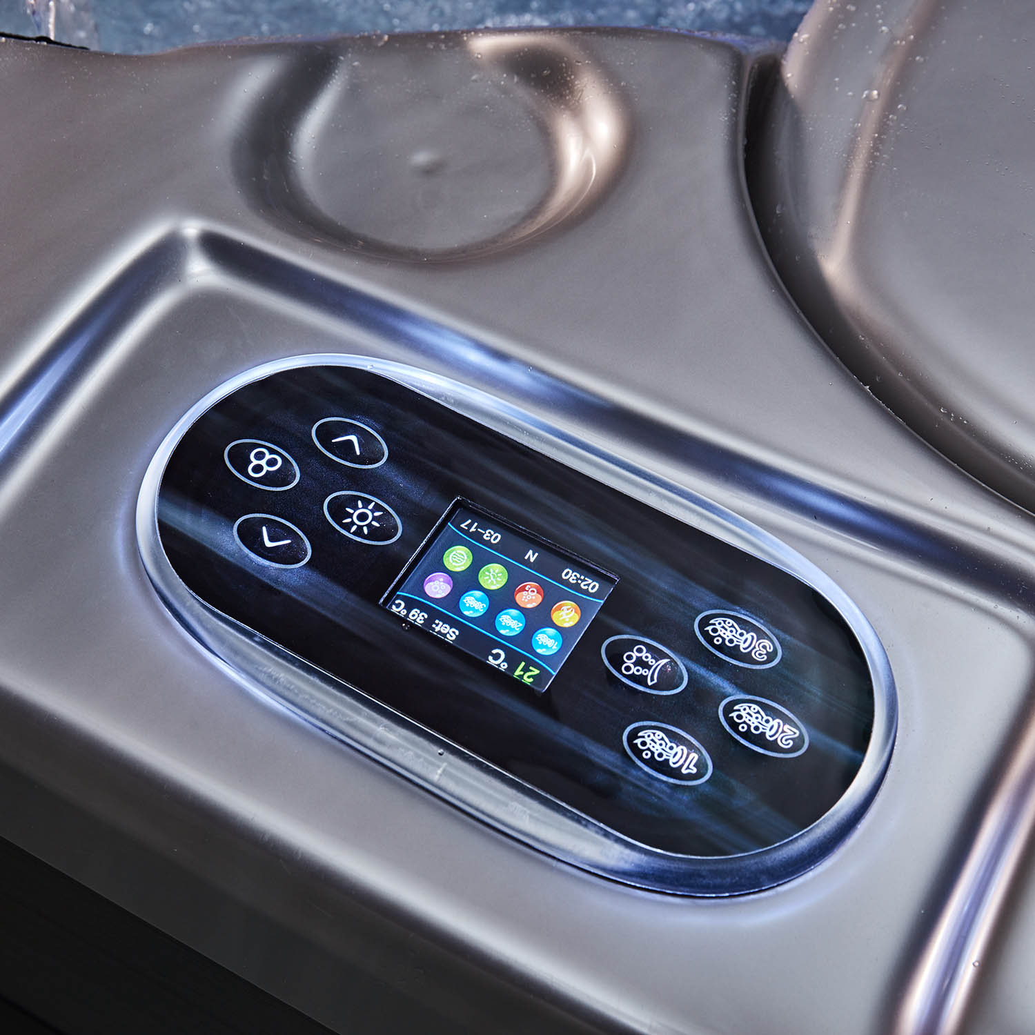 С размерами 2350x2350x920 мм, этот спа-бассейн с комфортом разместит до 6 человек. Здесь вы сможете проводить время с семьей и друзьями, наслаждаясь общением и расслабляющими водными процедурами.